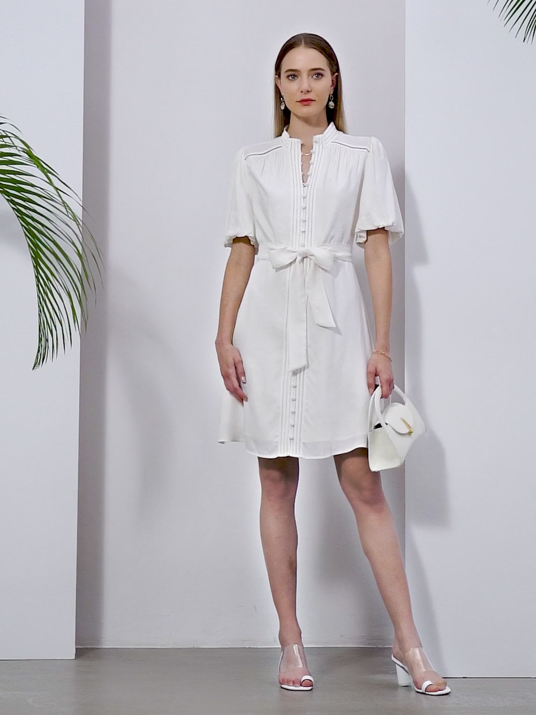 Delicate mesh embroidery is woven through the Lucile Short Dress, adding tonal texture to the on-trend cultured piec
