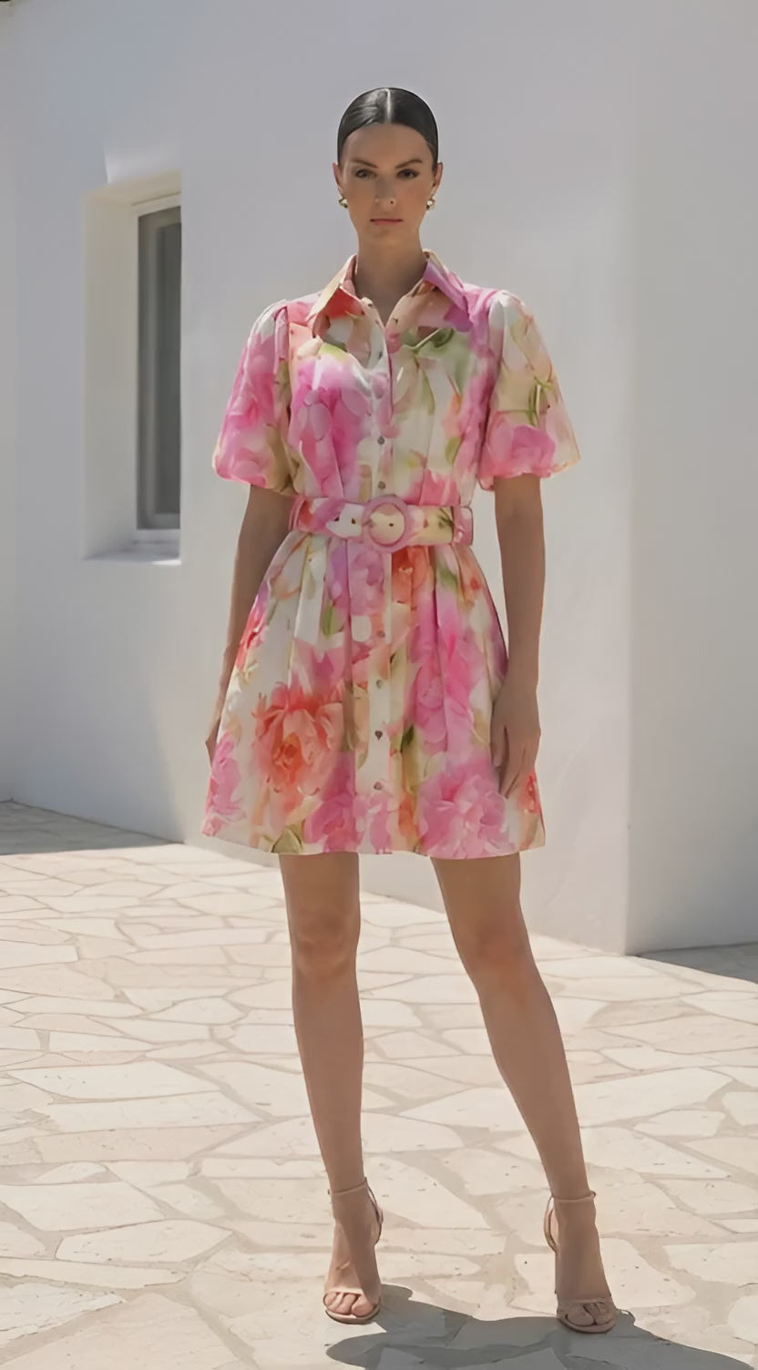 Elevate your wardrobe with the Charlotte Short Dress in captivating pink floral. This charming piece features a fitted bodice paired with elegant pleated detailing at the waistline, creating a flattering silhouette that celebrates your curves. The delicate floral print brings a fresh, feminine touch perfect for garden parties, brunch dates, or casual outings. Versatile enough to dress up with heels or down with sneakers, this dress is an essential addition to any style-conscious collection.