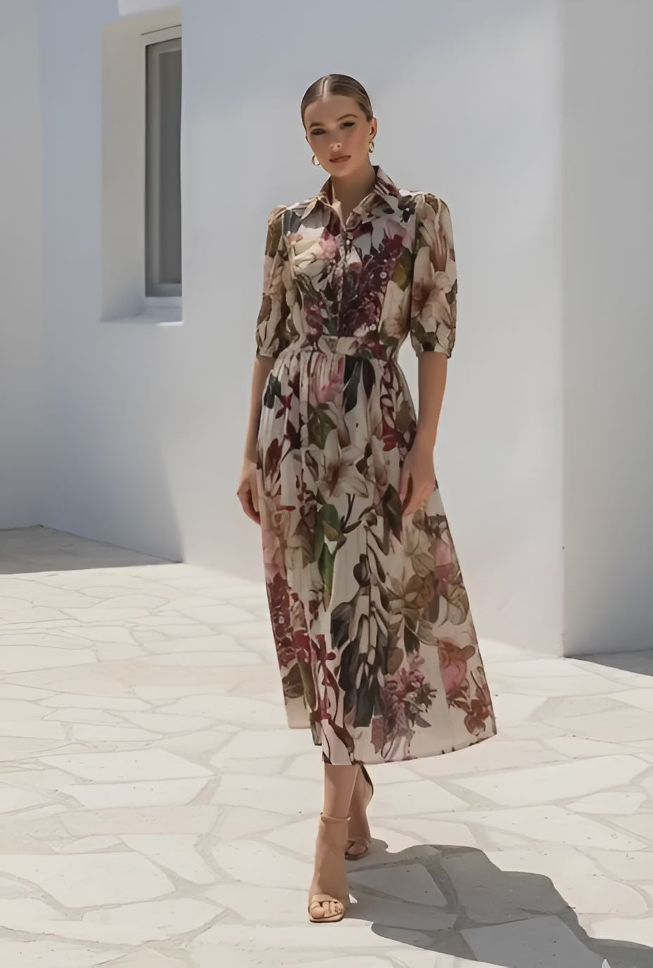 Effortlessly transition from day to night in this stunning botanical shirt dress. Featuring a vibrant floral print that captures nature's beauty, this versatile piece pairs perfectly with sneakers for casual outings or heels for evening elegance. The classic shirt dress silhouette offers comfortable structure with timeless appeal, while the botanical design adds a fresh, sophisticated touch to any wardrobe. An essential piece for those who appreciate style that's both practical and visually captivating.