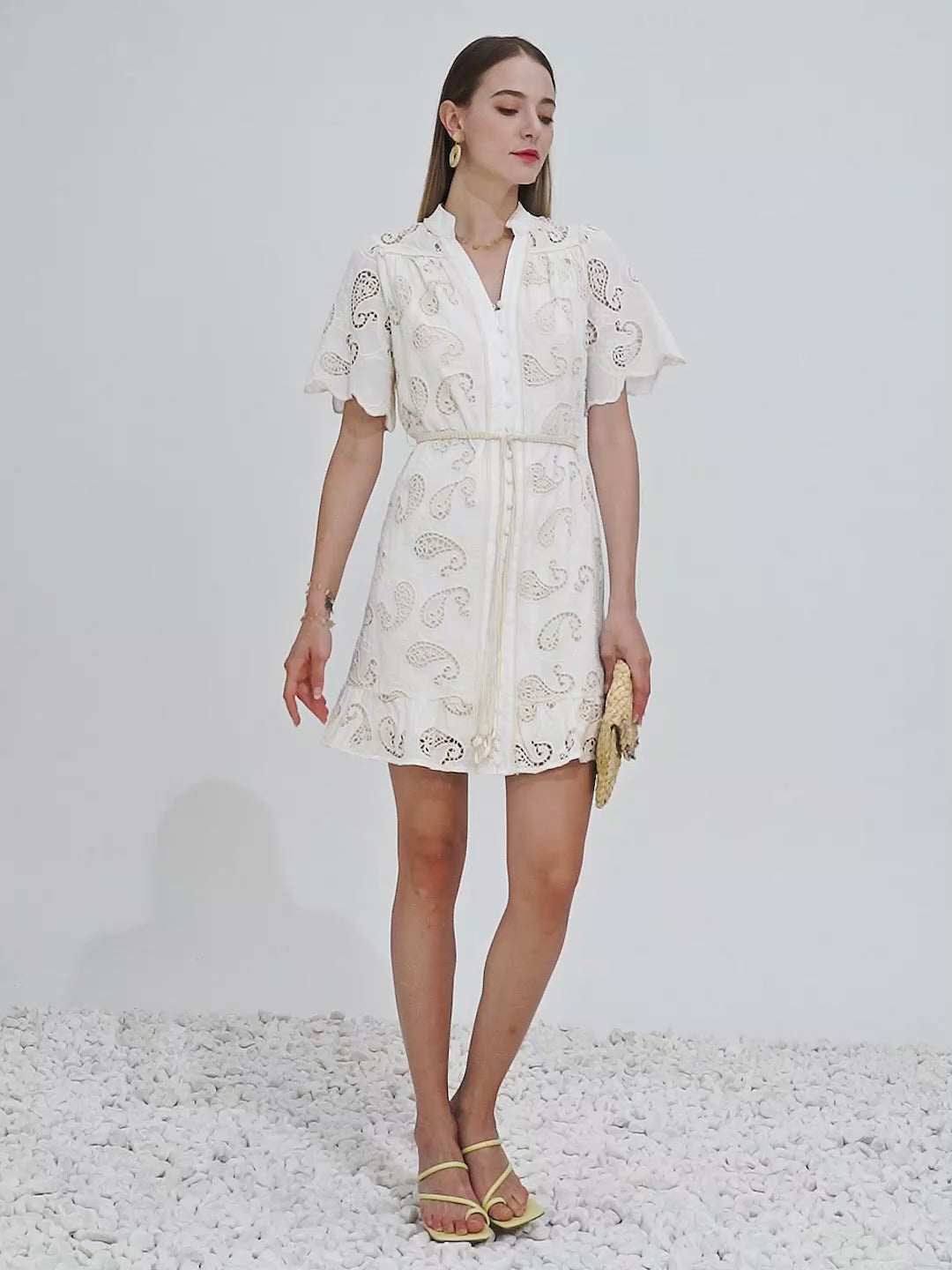 A classic cotton texture enhances the refined and ladylike allure of the Layla Short Dress. Delicate stitch embroidery creates textural interest and adds to the romantic look. - lined