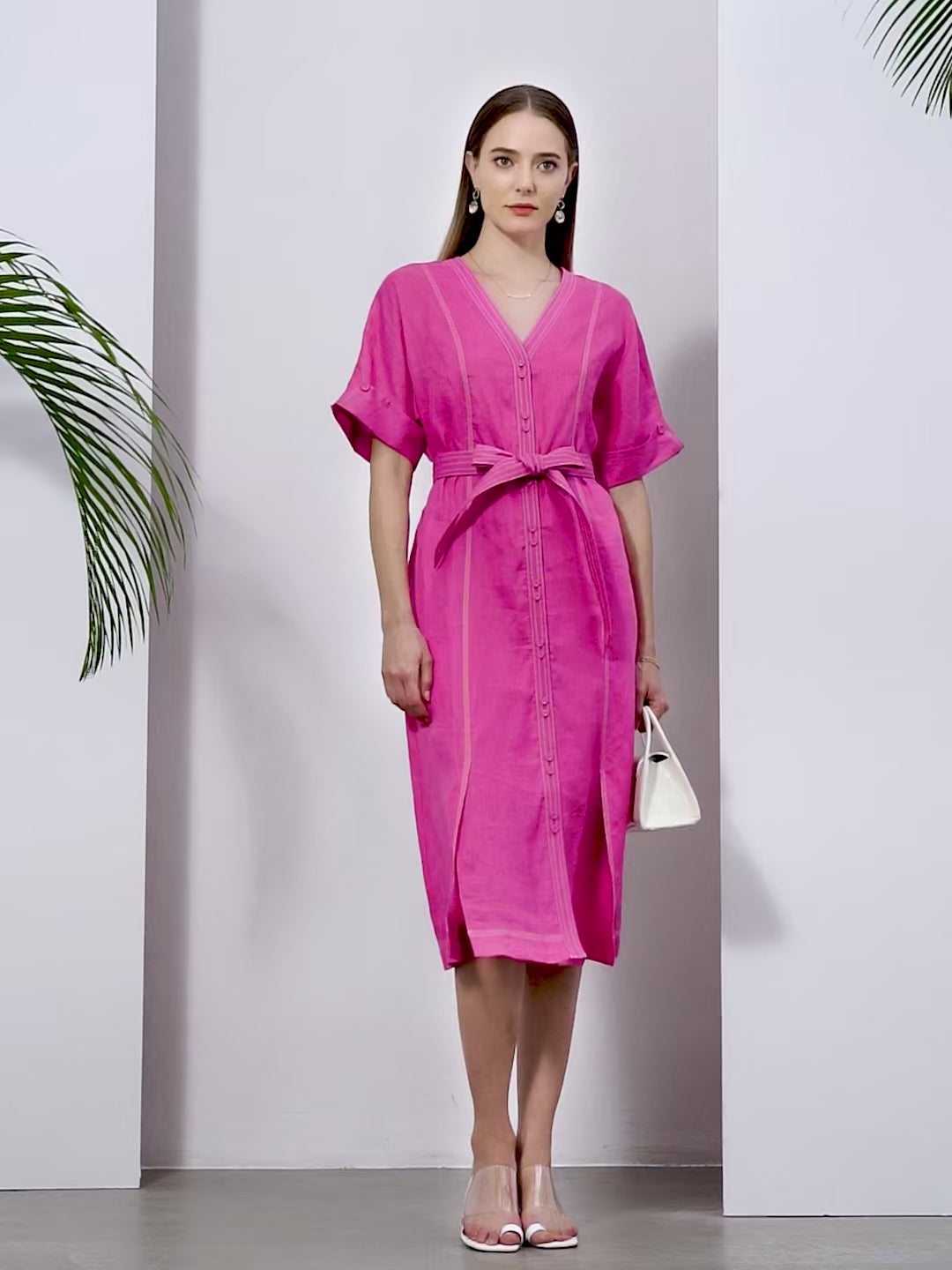GDS Marceline Linen Dress is Aurora Pink is an exquisite, modern take on a classic midi dress.