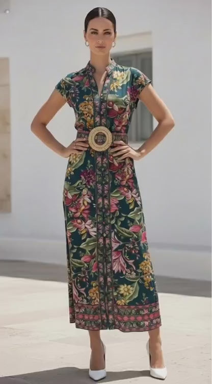The Paradiso Dress in Green is your go-to piece for occasions that call for understated elegance. Featuring a striking green print and graceful midi silhouette, this dress effortlessly transitions from daytime gatherings to evening events. The flattering cut ensures you'll feel confident and polished, while the vibrant hue commands attention without demanding effort. Style it with tan heels and delicate gold accents for a look that's both refined and memorable. Invest in a dress that works as hard as you do—timeless, versatile, and undeniably chic.